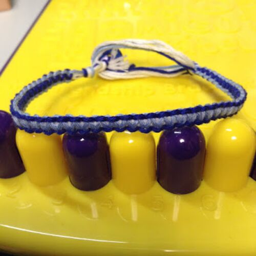 ブティック社の『結び大百科』という本を参考にして、平結びでミサンガを編みました。表裏糸は、DMCのSurf's Up!という、何色かセットになったパックのものから青と水色と白(芯の糸)を使いました。アマゾンでの取扱いは以下の通りです。https://www.amazon…